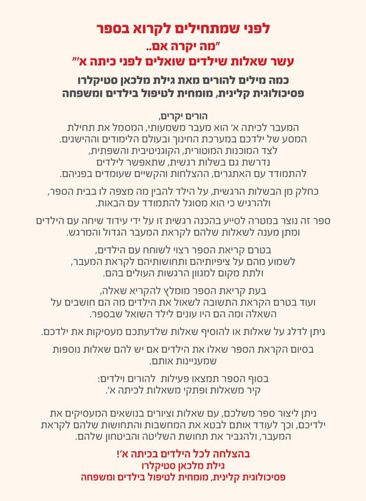 עשר שאלות שילדים שואלים לפני כיתה א׳ - ספר הכנה רגשית