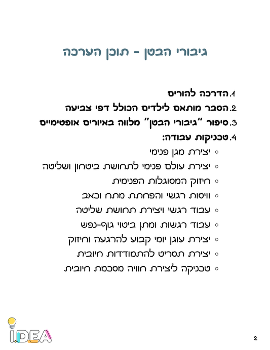 "גיבורי הבטן" ערכה דיגיטלית להדפסה ביתית- ערכת פרוטוקול וטכניקות חוויתיות לילדים הסובלים מכאבים פסיכוסומטיים -