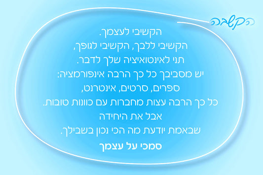 ספק:I.DEA מרחב מקצועי לטיפול והתפתחות אישיתמחיר רגיל 55.00 NISמחיר רגילמחיר יחידה לכל80.00 NISמחיר מבצע 55.00 NISמבצע -