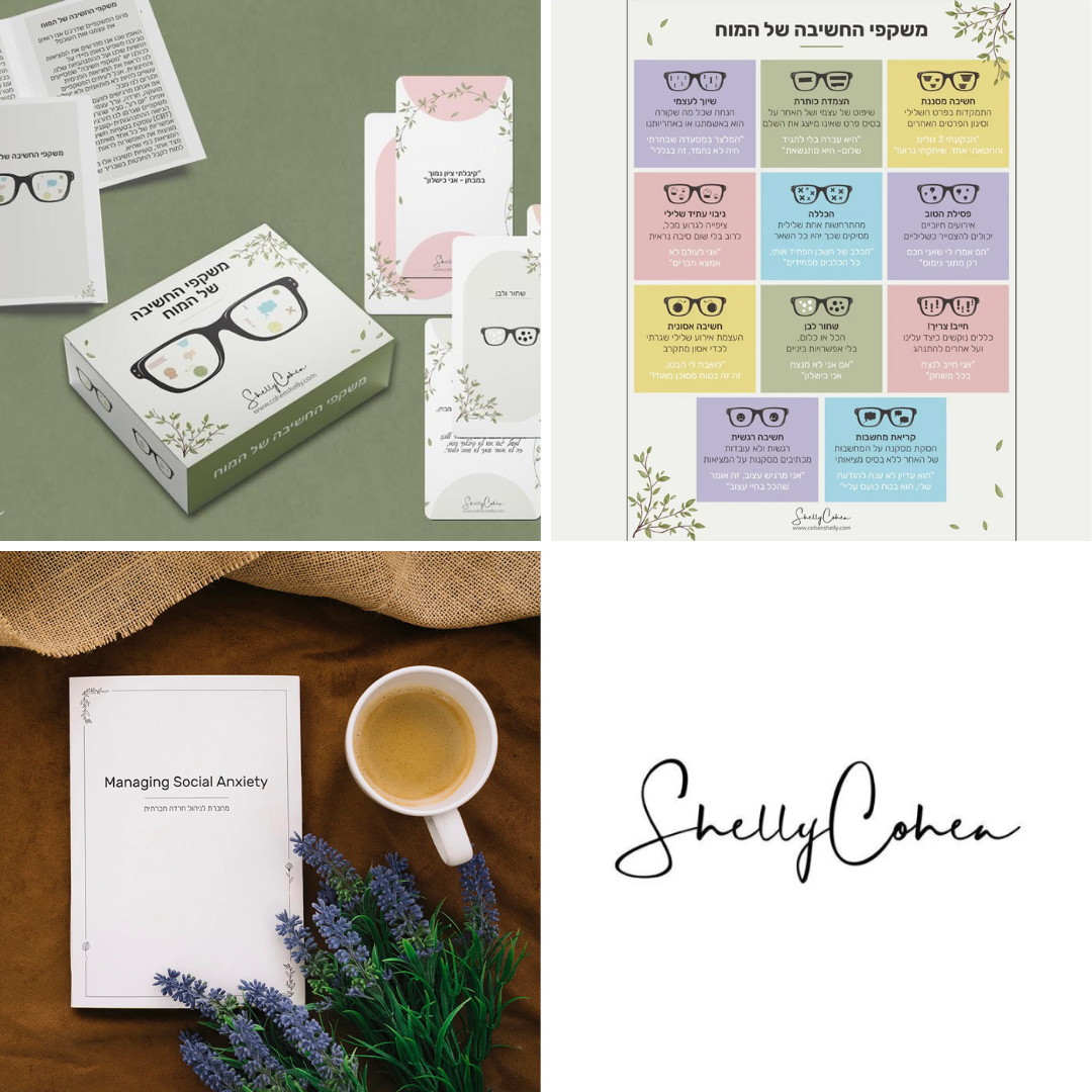 א. ערכת קלפים: "משקפי החשיבה של המוח" - 41 קלפים ובהם: קלפי "משקפיים"המלמדים סוגים שונים של טעויות חשיבה (לדוג': הכל או כלום, קריאת מחשבות, ניבוי עתידות ועוד) כולל דוגמה והצעת שינוי מחשבתי, קלפי תרגול – מצבים מהחיים שמזמינים איתור, ניתוח ותרגול של שינוי מחשבתי וקלפי תרגול ריקים – לעבודה עם דוגמאות מהחיים האישיים של המטופל.