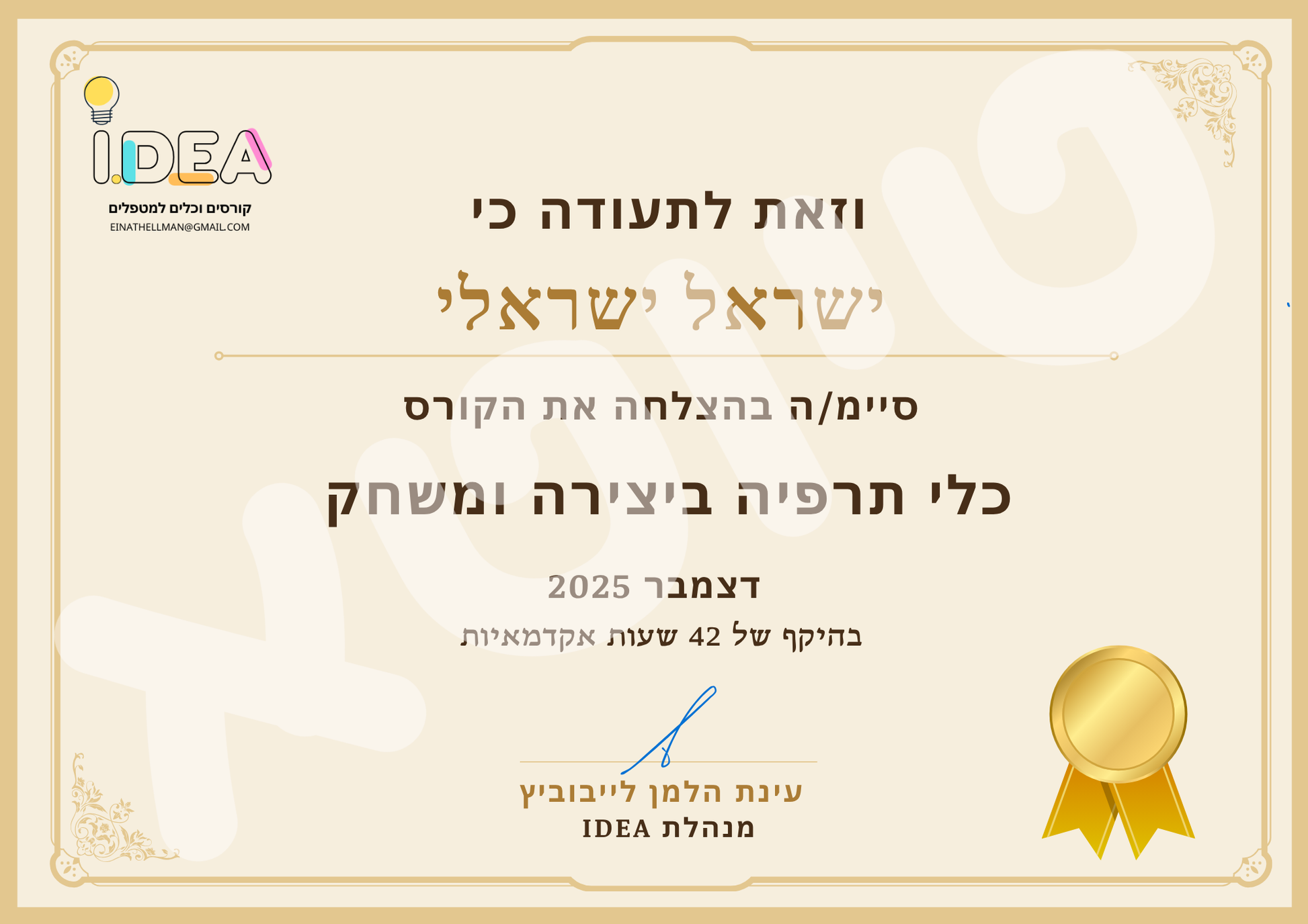 🌟 למסיימים תוענק תעודת השתתפות מבית IDEA- כלים וקורסים למטפלים.🎓